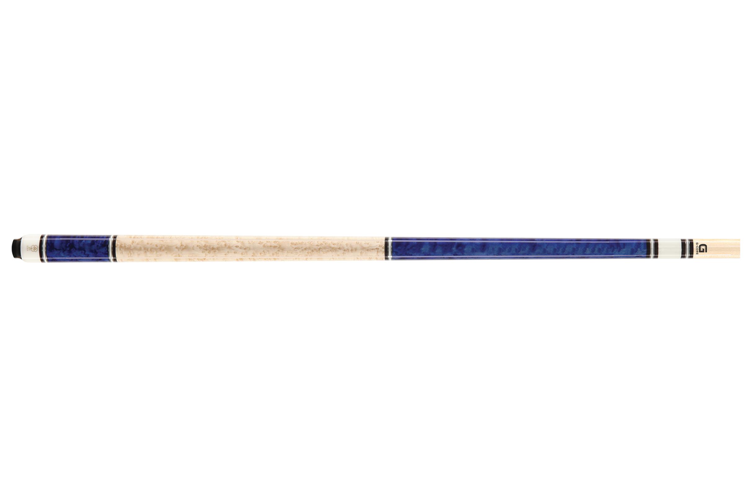 Birdseye maple forearm/sleeve Pacific blue stain Silver, black urethane & white urethane rings Birdseye maple no-wrap handle White urethane joint meer info
