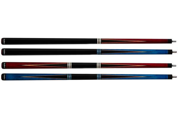 - Butt construction: Hard Canadian maple stained in Wine red and Sky blue, Sneak Pete style with 4 full spliced black points with Maple & black trims, unique wood accent rings – length 740 mm